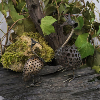 Our collection is eco-ethical and friendly. The animal figurines are handcrafted from sustainably sourced paper mache, discarded metal and upcycled vintage pieces. These pieces are sure to add a bit of delight and character to any space. Sustainably sourced and handcrafted.