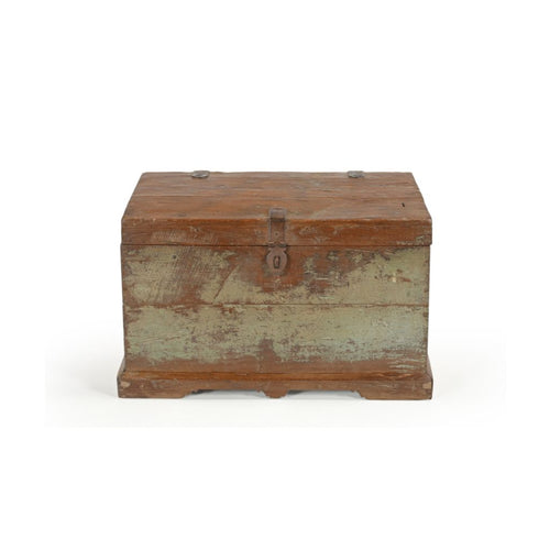 Hand-crafted solid salvaged wood lends a dynamic character to this distressed wood trunk by emphasizing the distinctive grain patterns, grey patina, and inherent differences in the wood. Under the lid, there is ample space for versatile storage. Additionally, it can be used as a coffee table, window table or low-lying bench that will serve the purpose of charm and décor.