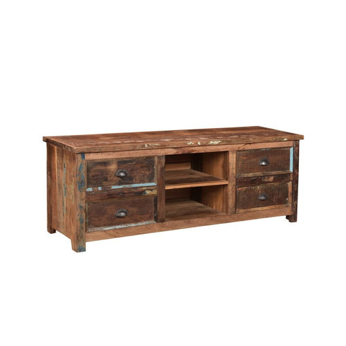 The Sand Media cabinet is made from reclaimed wood, which provides a beautiful patina to complement the warm tone of the wood. This beautifully designed unit is exceedingly stable, durable and attention-grabbing. This media cabinet is entirely handmade, and its aesthetically appealing wood grain makes it unique and distinctive.