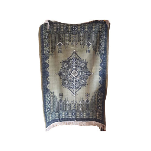 Experience the beauty and quality of our Dark Green Cotton Rug, showcasing a stunning geometric design crafted by the skilled Bishnoi tribe in India. With a unique and limited edition piece, each rug is handprinted on 100% pure cotton, offering a rich and captivating emerald green color that will enhance any home.