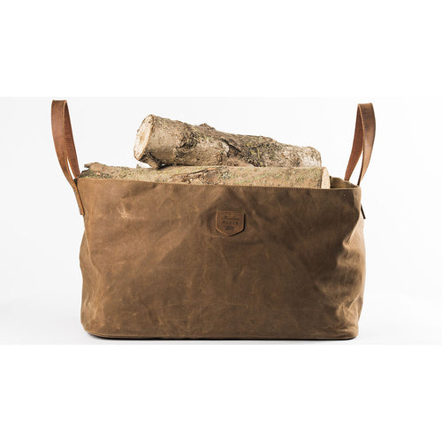 This is a nice log bag in a warm colour waxed strong canvas & natural leather straps which makes it fit well next to your fireplace. It is fully lined for extra longevity.