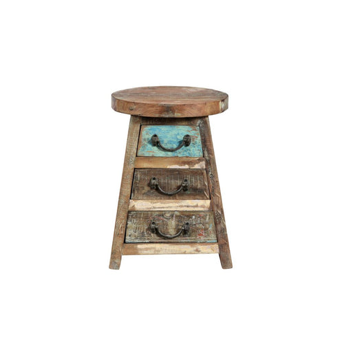 Sometimes you just need furniture that is multi-functional. This cute stool with 3 drawers is made from reclaimed teak and finished with distressed paint. The teak peaks through the mint paint creating a feeling of warmth and colour. From a stand for your indoor plants to extra storage in your kitchen, this teak wood storage stool may be small but it’s mighty.