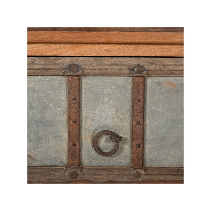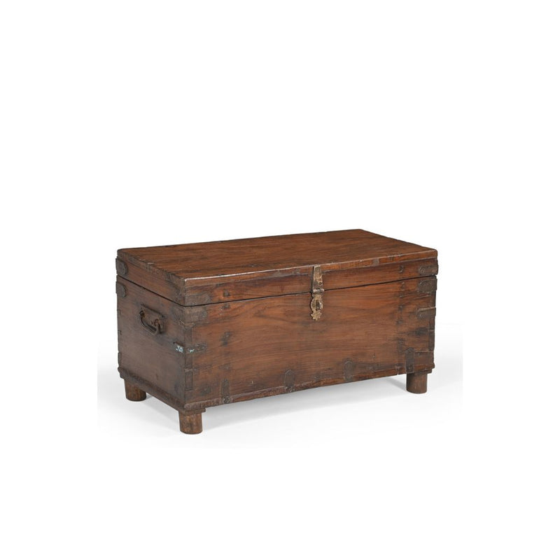 Secure the lid of this large trunk with the beautiful brass, lockable latch. On either side of the chest are two pull handles.