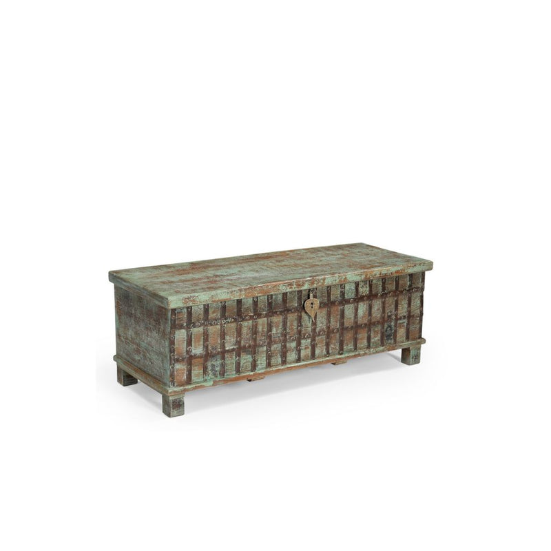 This surface-distressed piece would look brilliant in a  living room or bedroom for an inspired focal point in vintage or rustic-inspired decor. It is spacious enough to store blankets, throw pillows or clear clutter. Speaking of mess, it would work well as a large toy trunk to quickly access games and toys and keep them out of sight when not in use. The shabby chic look and appeal give this trunk its unique style story, while its functional storage space provides opportunities to use in any room and for many years.
