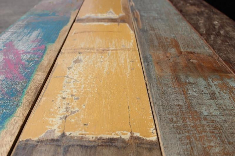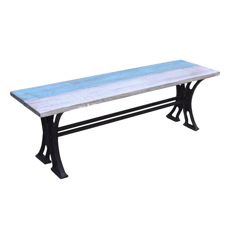 Reclaimed Wood Dining Bench Seat with Ornate Cast Iron Base. This Striking Coloured wooden bench is perfect with a dining table or in a patio area. If you are tight on space this bench would provide a versatile seating option and can be kept under the tables 180cm and upwards. Easy to pull out or have against a wall in the dining room or kitchen. Made of long-lasting Wood & Iron. This wood bench has iron cast legs, which is more strong and more durable.  The backless bench can be used for a dining table bench or a hallway entry bench seat.