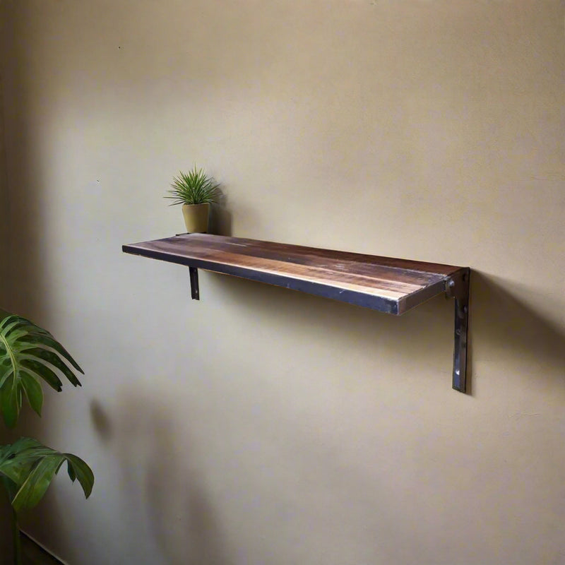If you're looking for a shelf for the corner that makes a statement, consider this blended patina. The pirogue shelf is an excellent alternate option.