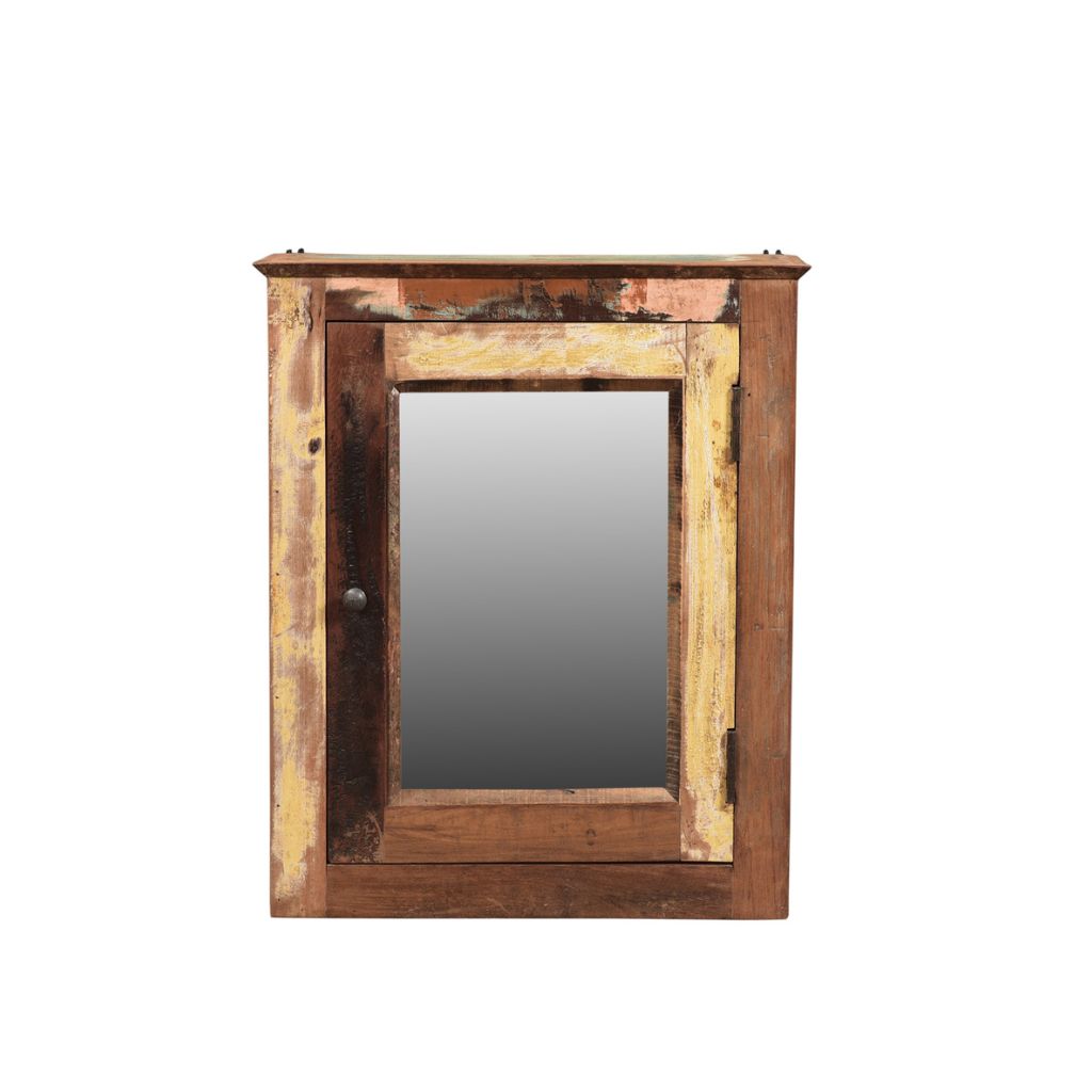 The Cabinet has two shelves on the inside perfect Storage for medicine & bathroom utensils. The Frame was handcrafted from reclaimed wood & a mirror. The measurement of the cabinet is perfect for most standard bathrooms. Mixed wood patina suits most interiors and would look great over a bathroom sink.