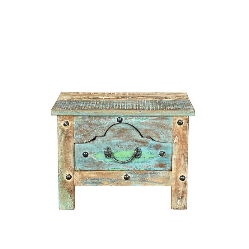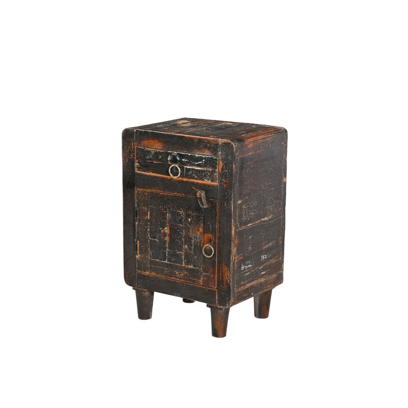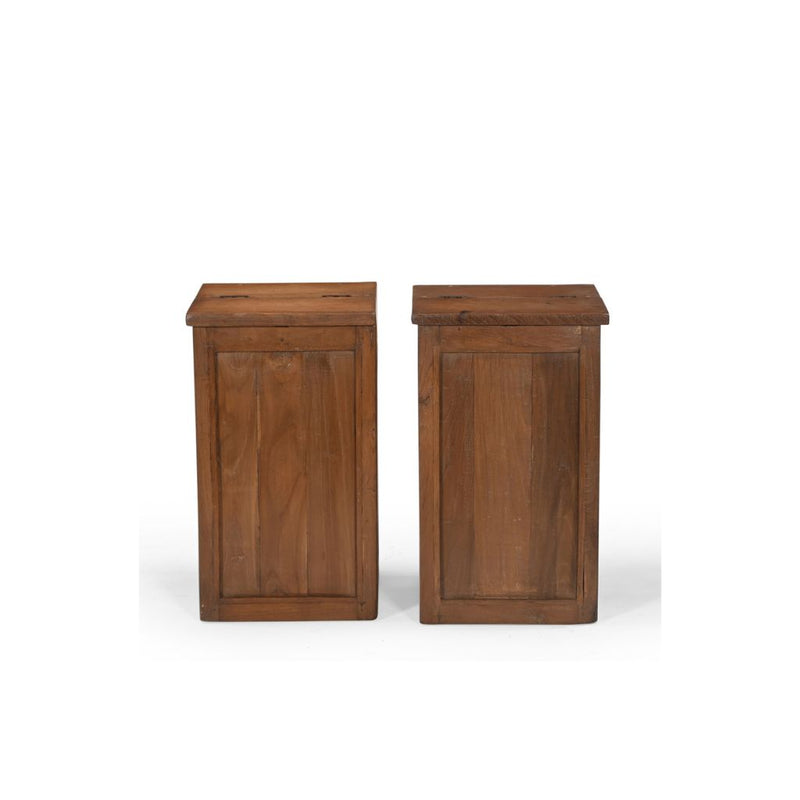 Vintage teak wood locker with one door and one inner shelf. It has carving on the frame of the door & a brass handle.
