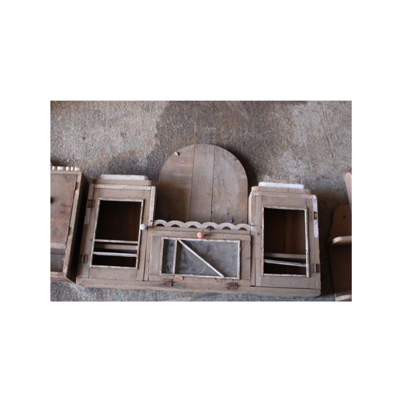 An original two-door glass wall cabinet with an inner shelf for storage and display. The vintage grey patina with hand carved trim was masterfully crafted by artisans. Would work perfectly in a kitchen to keep and display fine delph. Can also make the perfect storage solution for a bathroom. The stunning painted cabinet would suit a country cottage style home or add character to a modern bathroom.