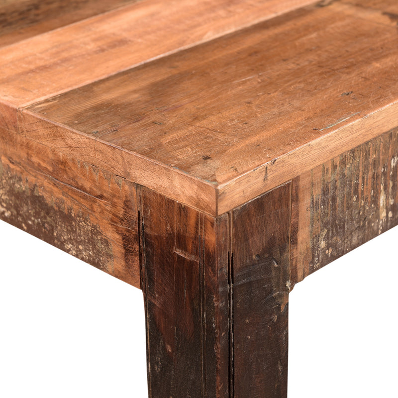 Made from a mix of reclaimed Mango & Teak Woodcut off's for the tabletop, and can be supplied with either Solid Teak Legs or a choice from our range of Cast Iron Bases.